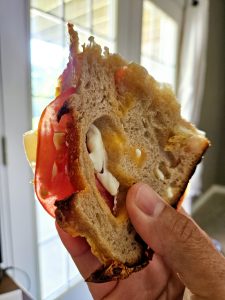 If you don’t plan on eating it all within 3 days, I recommend slicing your bread, double bagging it and keeping it in the freeze. Simply pull out slices as you want them. Let them thaw on the counter or pop into your toaster. This is my preferred method for storing sourdough.