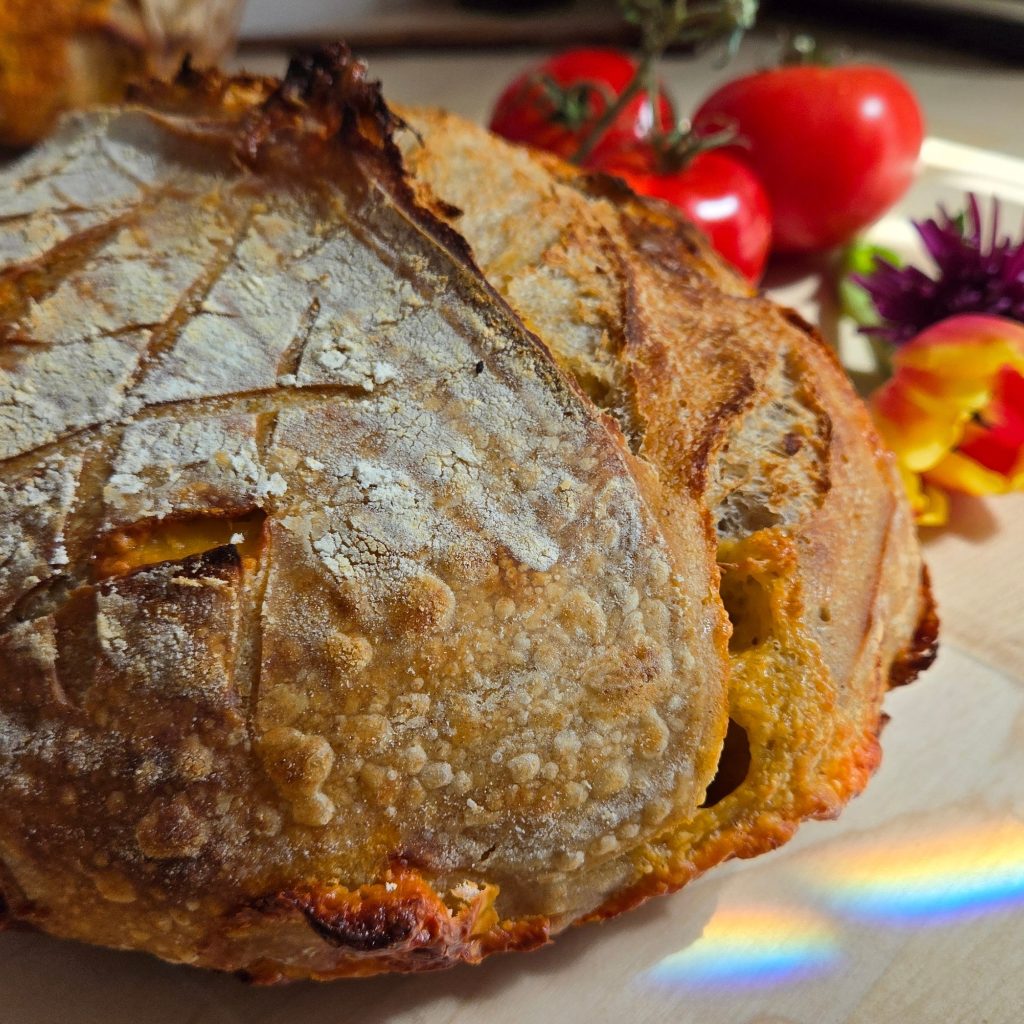 A savory delight with a rich, cheesy twist. Infused with sharp cheddar cheese, it boasts a golden crust and a tender, tangy crumb that perfectly complements the bold flavor of the cheese.